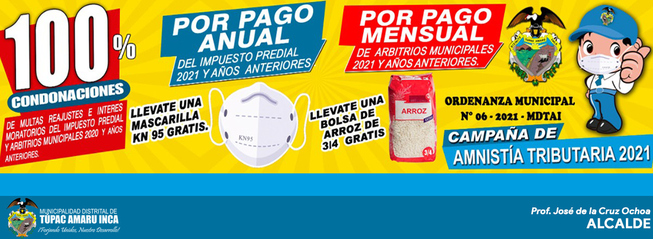 #BENEFICIARIO DE LA AMNISTÍA TRIBUTARIA 2021 ORDENANZA MUNICIPAL N° 06-2021-MDTAI
